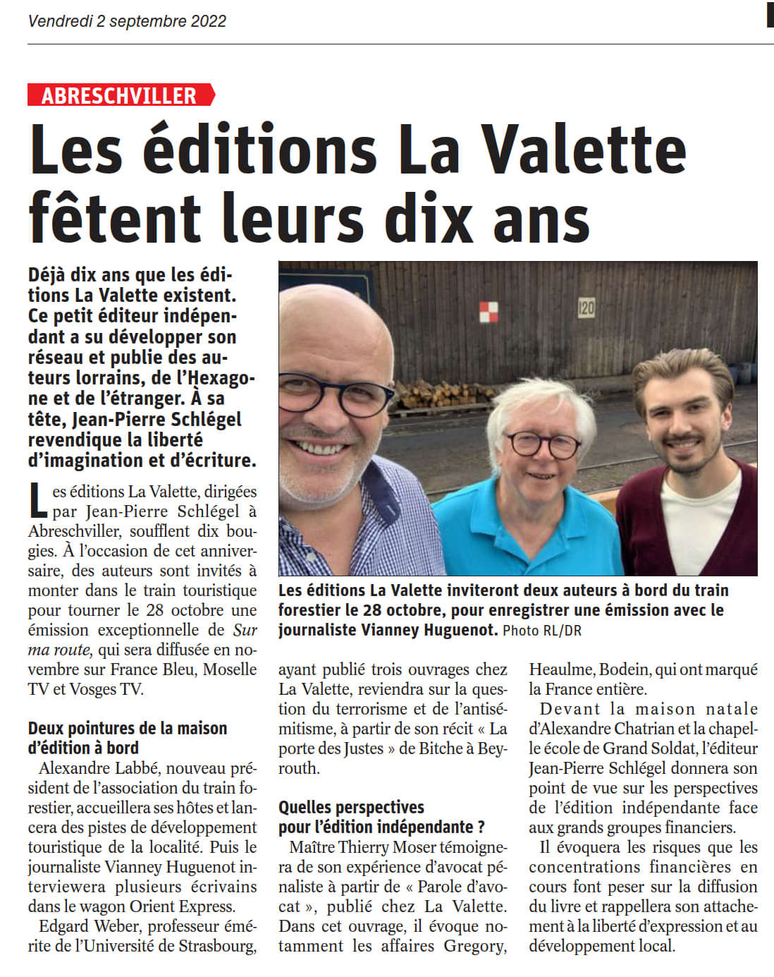 A l’occasion des dix ans de notre maison d’édition France bleu, Moselle TV et Vosges TV diffuseront un numéro spécial de Sur ma route l’émission de Vianney Huguenot tournée dans le train forestier d’Abreschviller