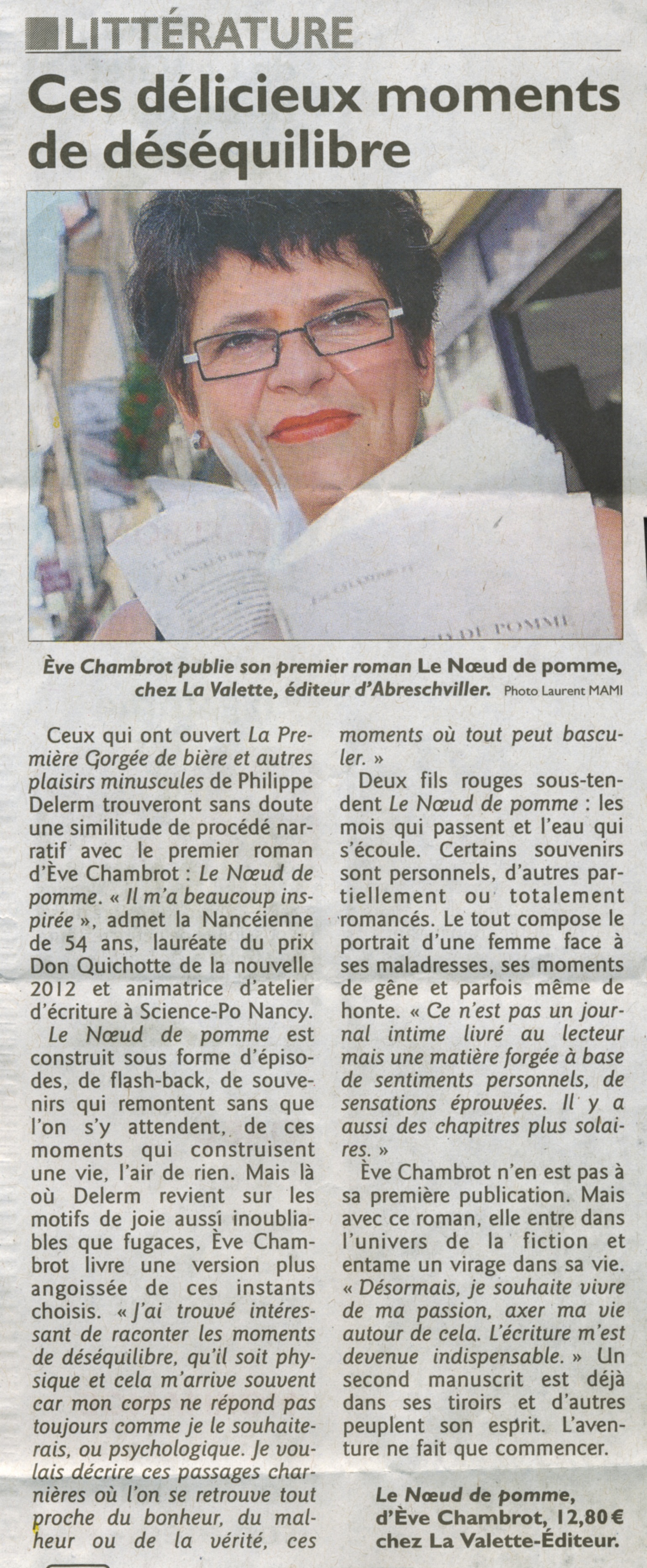 Eve CHAMBROT dédicacera Le Nœud de pomme (en sélection)