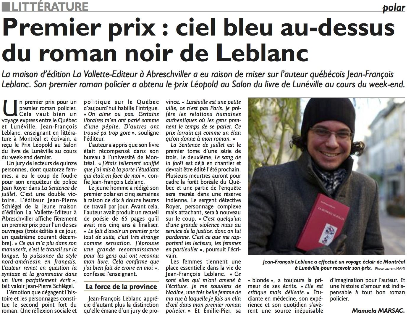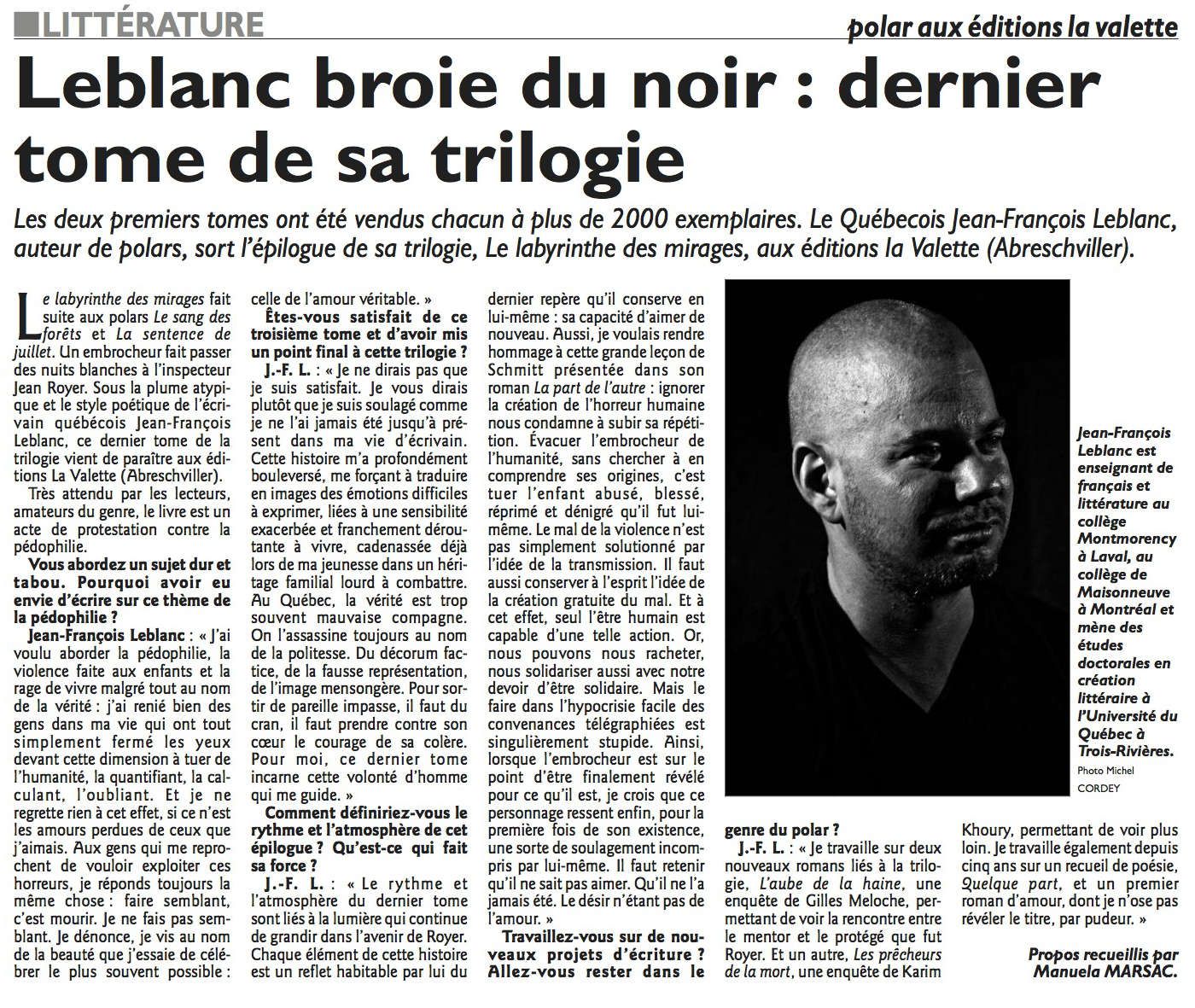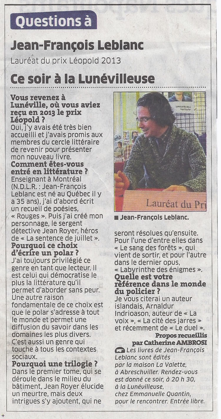 L'EST RÉPUBLICAIN du 1er décembre 2013